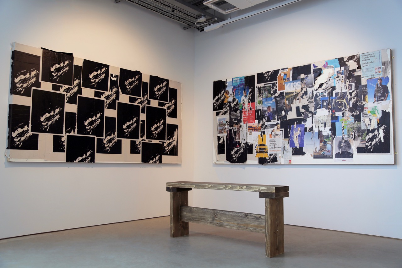 I am negotiating the still and moving image components of my practice and how they are experienced within the 'white cube' gallery. Informed by Christopher Wool and Mark Bradford's work, my paintings explore the notion of 'originality' within the subject, in particular focusing on the constructed mark. Recent experimental video works magnify details usually ignored, referencing the passive nature with which moving image is so often consumed today as a result of its ubiquity.