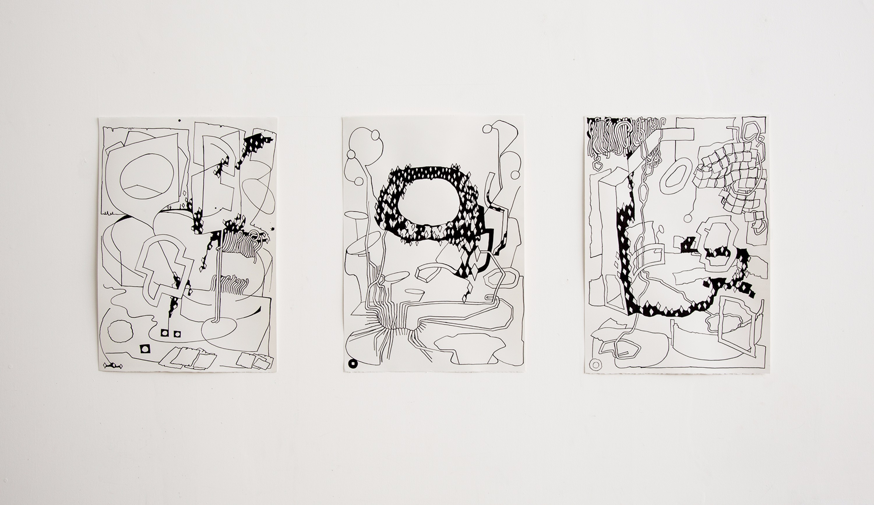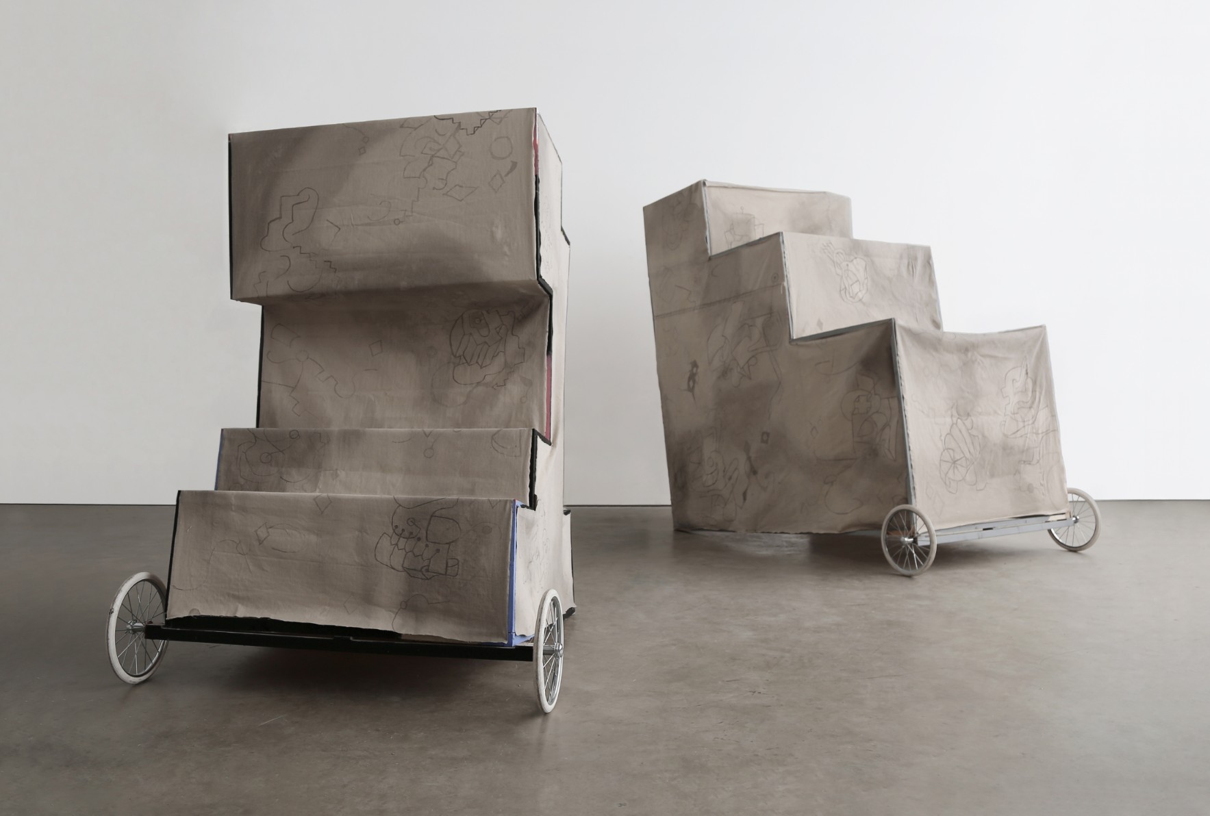 The theatricality implicit in my sculptures is actualised in certain works that involve performers, sometimes created in collaboration with musicians and composers. Impossible spaces and the architecturally in-between areas of corridors, staircases, and waiting rooms feature in my 2D works, creating parallels with my performative installations that attempt to fix the transitory state of rehearsal or planning.